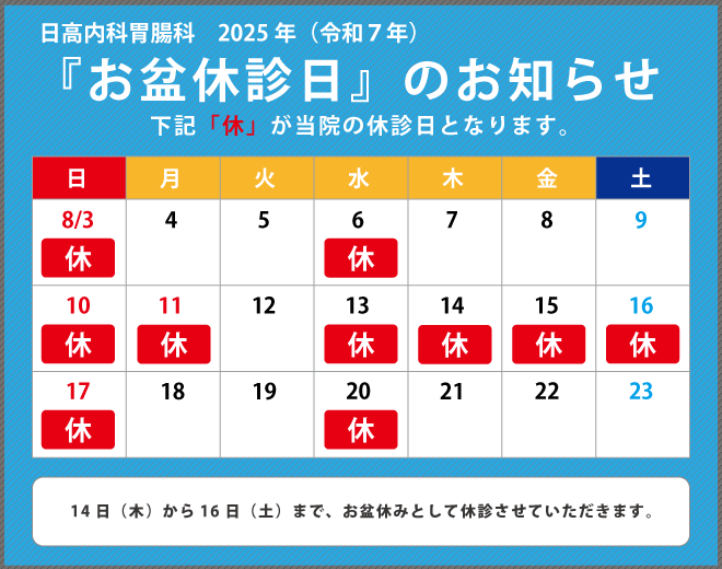 2025年 お盆期間の休診について